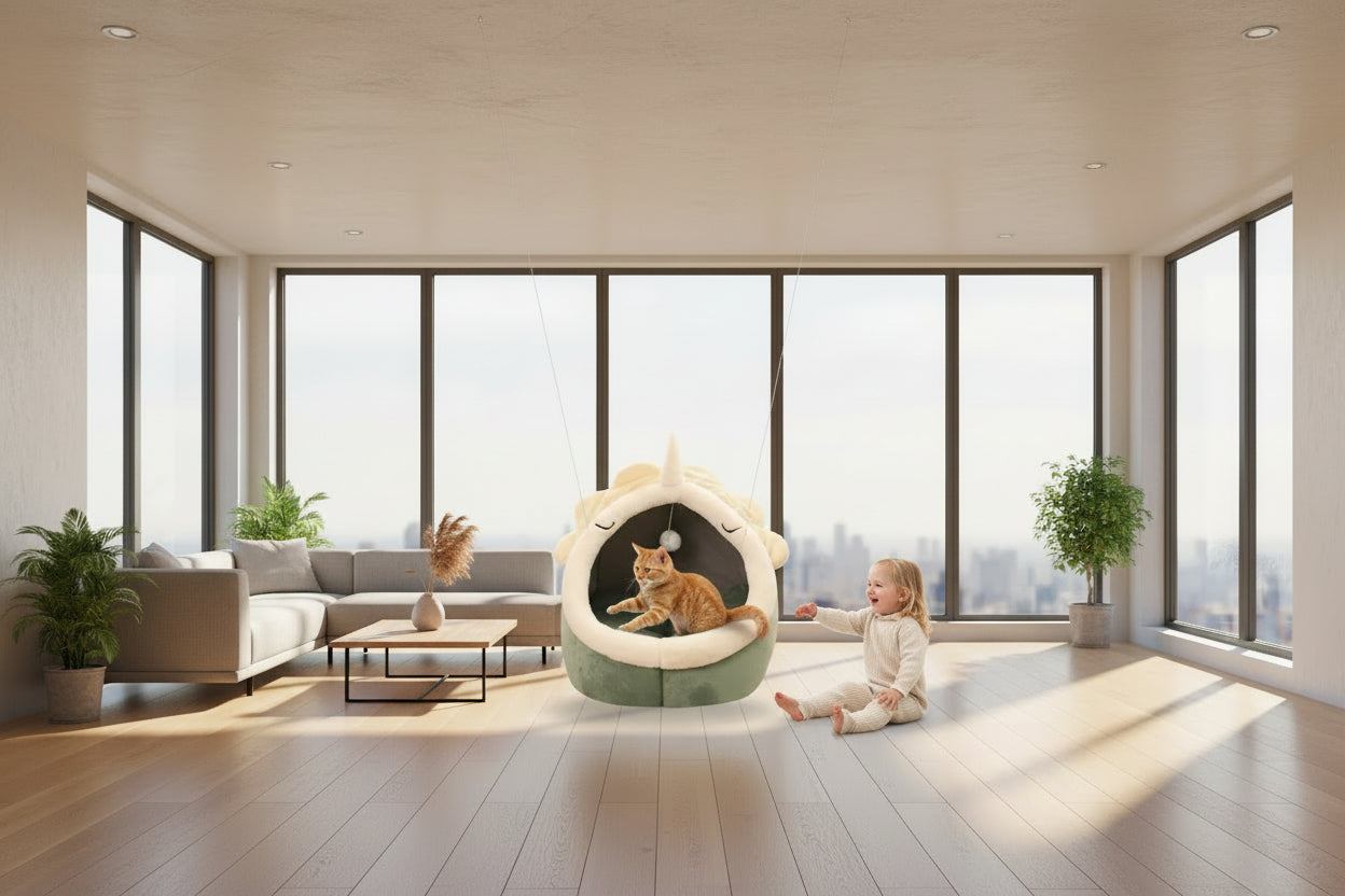 Katzenbett Kuschelhöhle - 3 Designs (Katze, Küken, Einhorn) - Weich & Waschbar