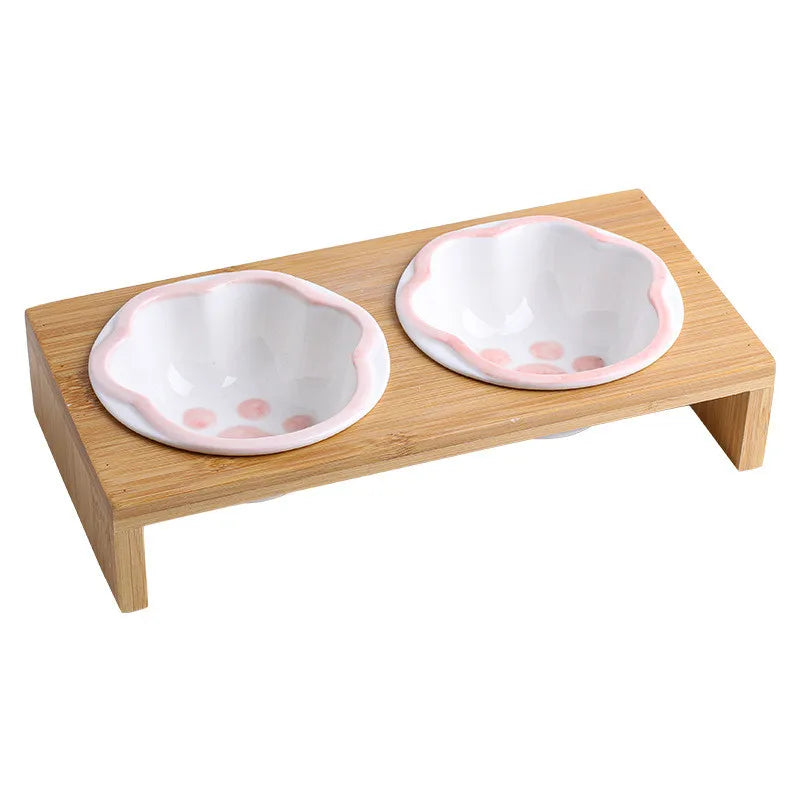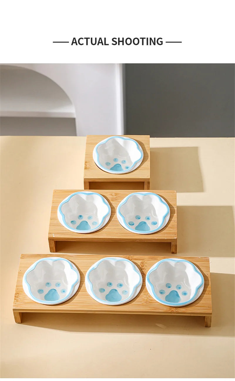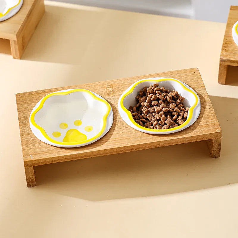 Diese Keramik-Futterstation mit Bambusrahmen bietet eine stilvolle und funktionale Lösung für Haustiere. Die sorgfältig gefertigten Keramikschalen sind hygienisch, geruchsneutral und leicht zu reinigen, während der stabile Bambusständer für sicheren Halt sorgt und ein Verrutschen verhindert.