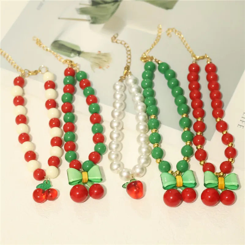 Perlen-Halsband für Haustiere – Handgefertigt, Kirsch-Design für Hunde & Katzen