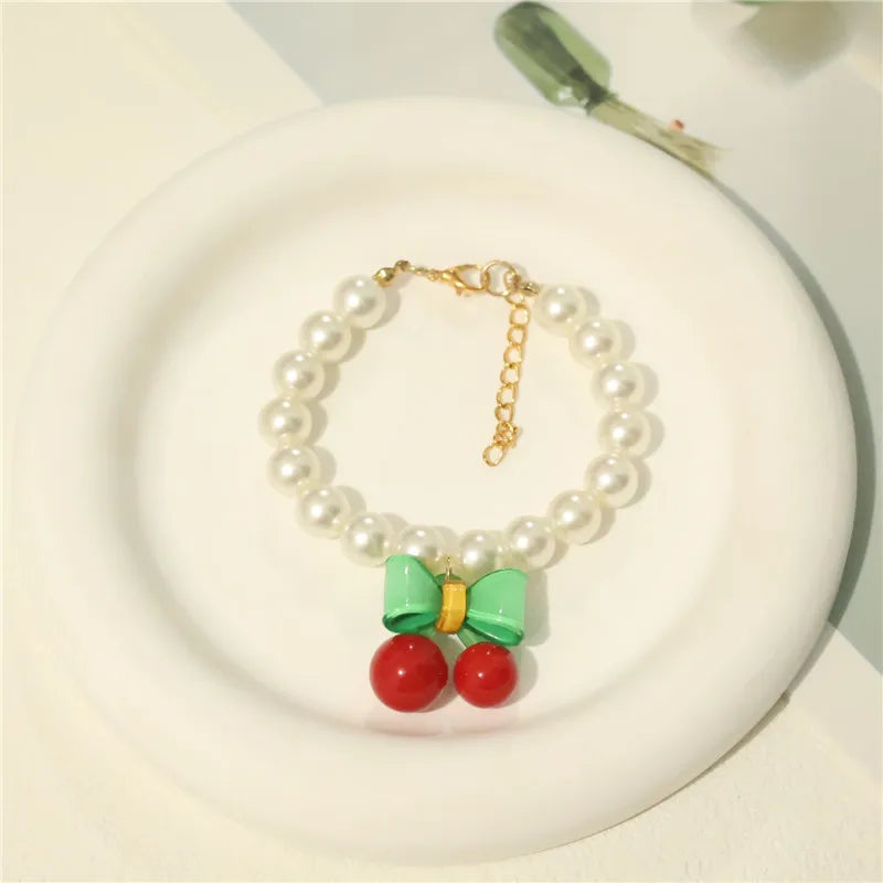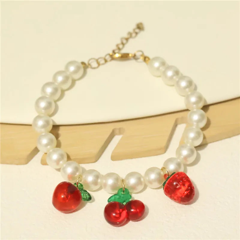 Dieses bezaubernde Halsband mit Perlen und Kirsch-Anhänger ist das perfekte Accessoire für Ihren kleinen Liebling.