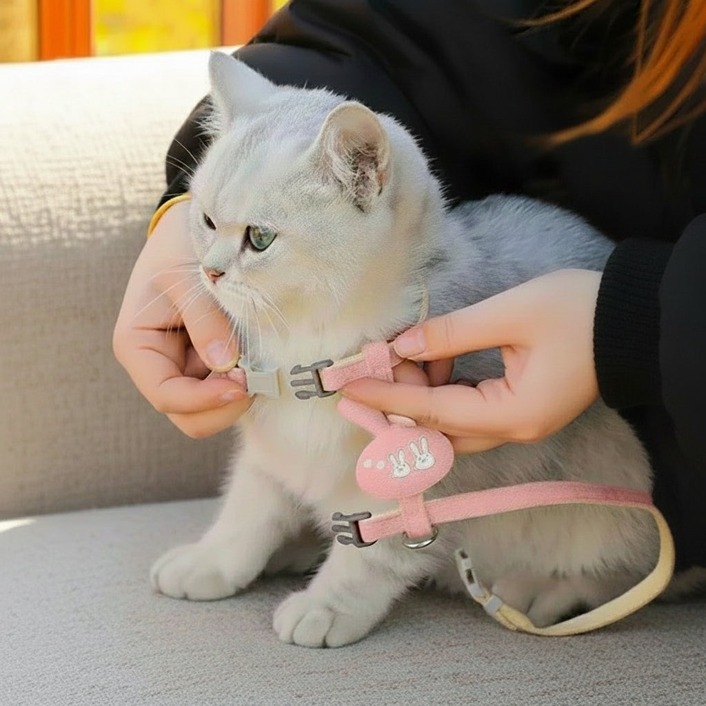 Verstellbares Cartoon-Geschirr mit Leine – Komfortable Halsung für Katzen & kleine Hunde