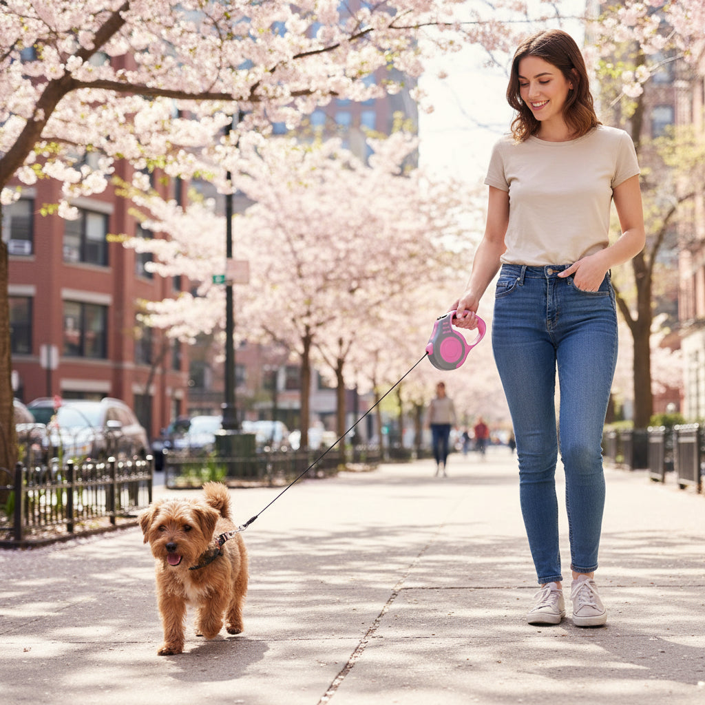 Diese automatische Hundeleine bietet maximale Bewegungsfreiheit und gleichzeitig volle Kontrolle. Das robuste ABS-Gehäuse, das strapazierfähige Nylonband und der ergonomische Griff sorgen für Komfort und Sicherheit bei jedem Spaziergang. Die Leine lässt sich weich ausziehen, blockiert nicht und verhindert Verheddern – ideal für Spaziergänge in der Stadt, im Park oder in der Natur.
