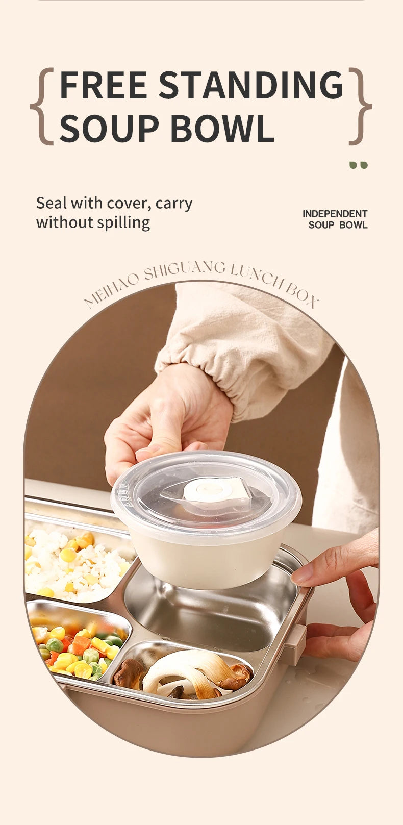 Diese hochwertige Lunchbox aus 304 Edelstahl ist perfekt für Schule, Arbeit und unterwegs.